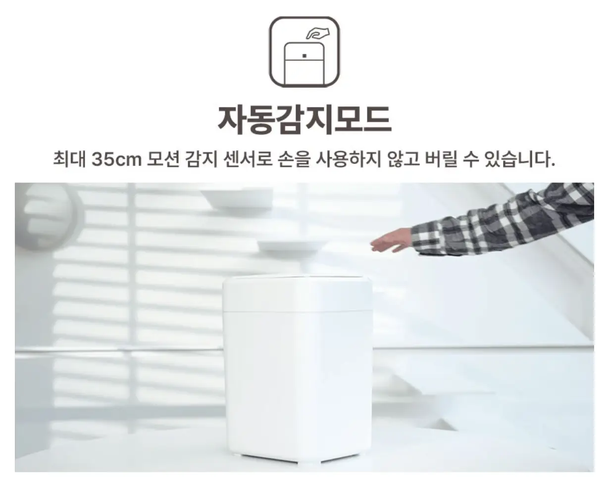 게다가 완전 분리형 구조는 전체 분리 후 세척이 가능하며 센서 감지후 5초 후 자동으로 닫히고, 쓰레기를 버리는 도중에 전혀 손에 닿을 일이 없어 위생적으로 안심하고 사용할 수 있습니다.